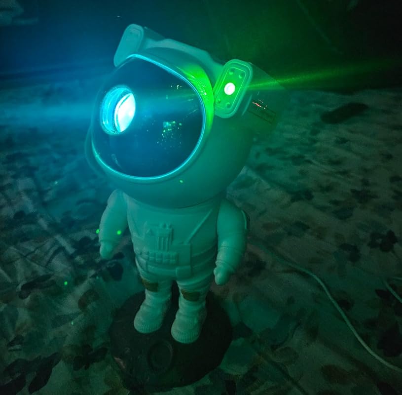 - Nordic Astronaut Galaxy Light Projector creates a captivating galaxy in any room with 8 stunning nebula effects and twinkling green stars.