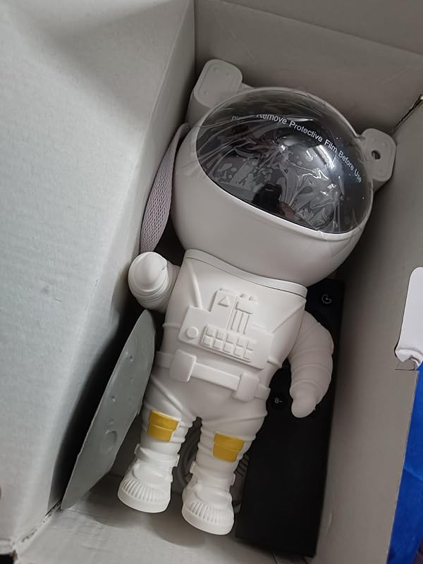Product review: Good packaging, neatly placed, came in pristine condition. Provided with Remote, charging cable and stand for astronaut to place in.Pros :1.lights and colours are amazing.2.stars have breathing and constant effect3.can change frequency of light with Remote and stars frequency too.4.has timer of 2 variations.Cons1.need to place the astronaut on stand firmly else it might be off balance.2.saw some reviews with Remote issues. Haven’t faced yet as of now.3.will be great if we got random stars placement in futureOverall :great product, great for small/medium size rooms, will again review after using them for long term.Disclaimer : the same product starts from 1000 – 1500/- so do basic research and buy them. But it’s worth the money whatever it might be.